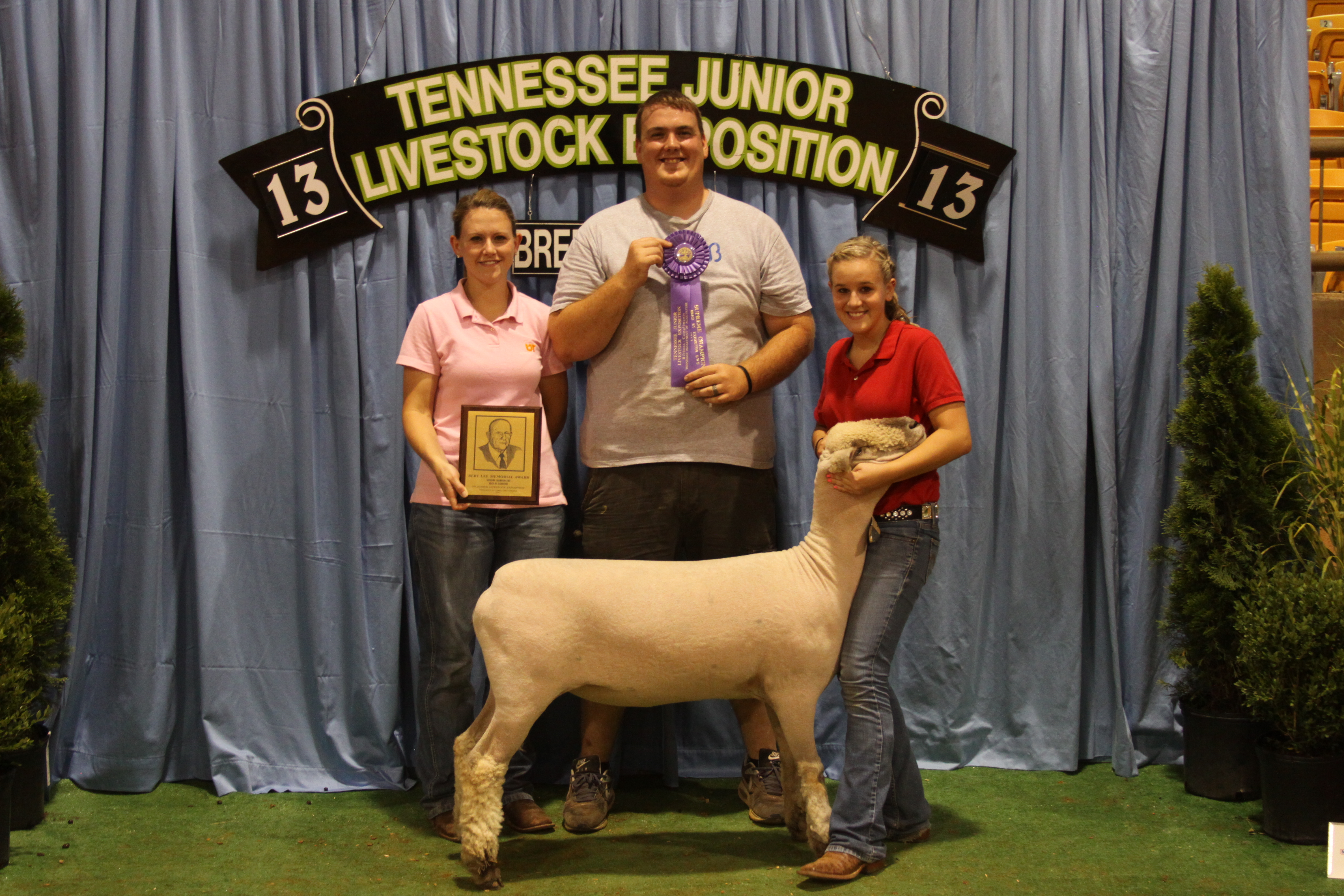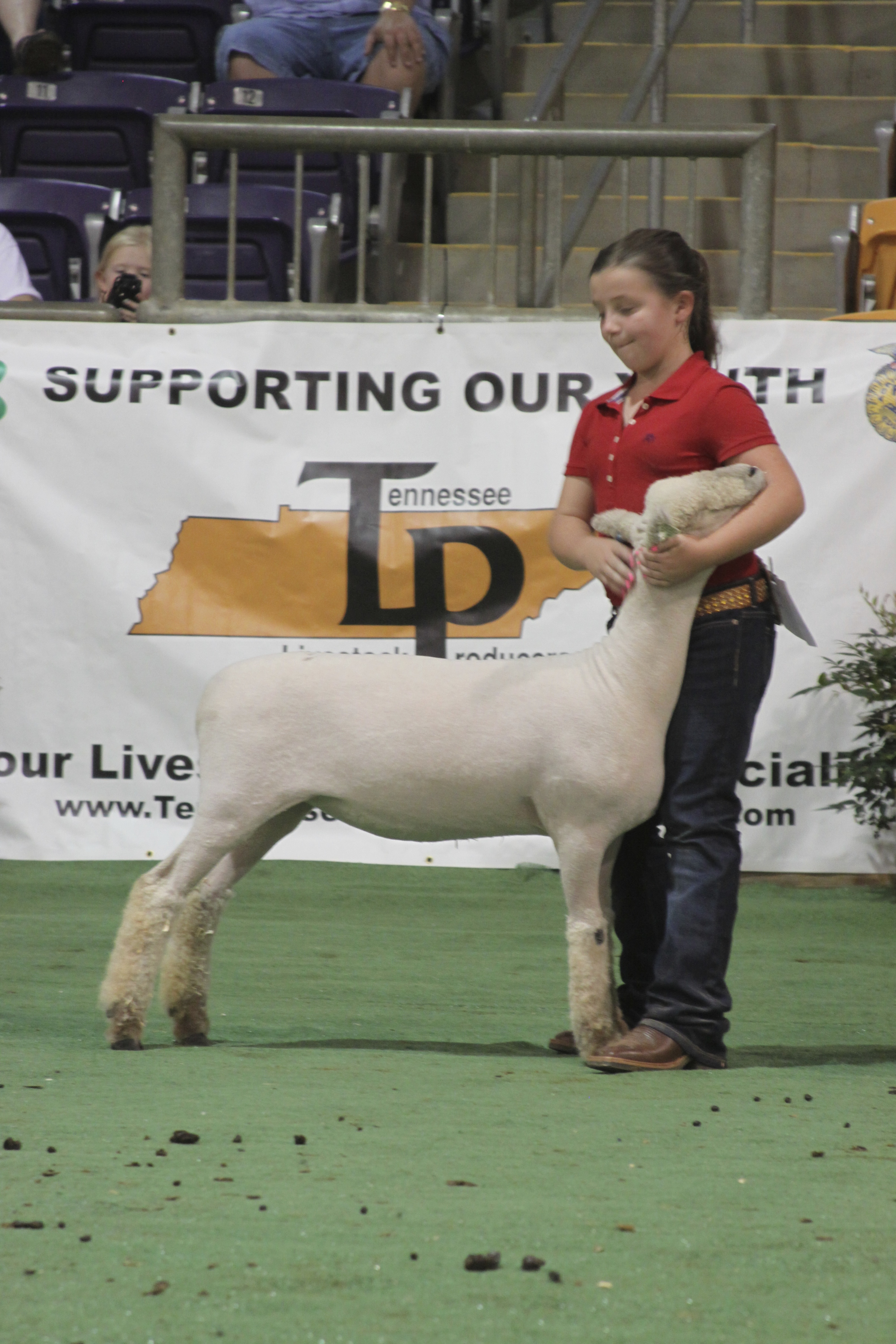Wow! This show season has started out well for Doug and me and the youth that we help! In July we spent 4 very hot days at Tennessee Tech University for the 2013 TN Junior Livestock Expo Sheep Events in Cookeville, TN. The girls (C & M) washed sheep until they were ready to fall over and Doug, Travis, Chrystal and myself sheared/fitted until we couldn’t see straight and our hands wouldn’t stop vibrating! All sheep survived and all humans were relatively unharmed (except for the occasional cut from the clippers) by these events, but boy were we tired. The weeks and days leading up to this statewide 4-H & FFA sheep show are easy to sum up in a short phrase, hard work pays off. Raising and showing sheep takes a lot of time, effort, and dedication by many people. It takes moms to keep everything organized, health papers in order, and registration papers in check. It takes dads driving trucks and trailers early in the morning and late at night to make it to a show, baling hay for the sheep to eat, making the trips to CO-OP, and keeping all health supplies on hand. It also takes role models and mentors to help you along the way, make sure you get the right sheep in the right class, to tell you to work harder, walk your sheep more, you missed a spot shearing, keep that top down, raise that head up, did you remember to trim your sheep’s feet?