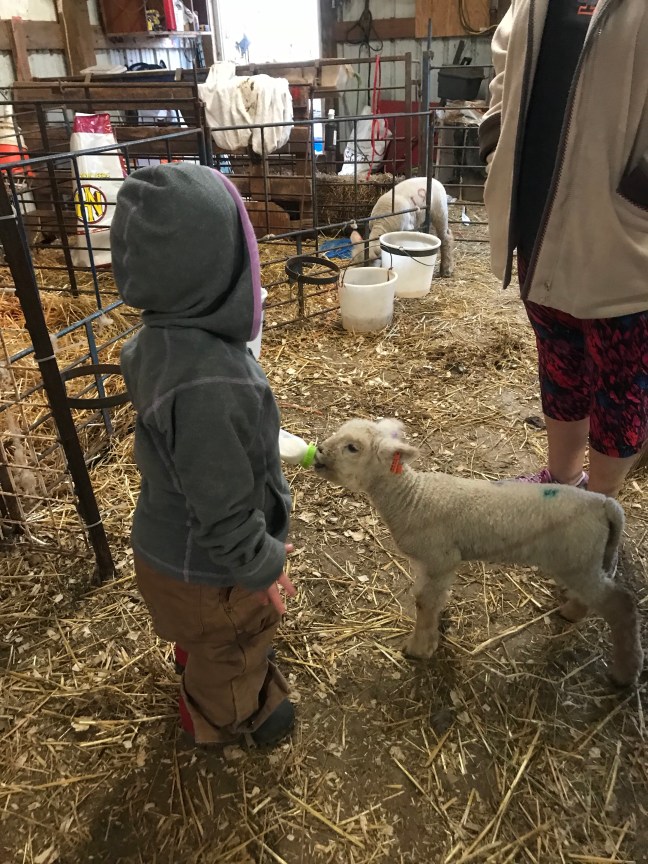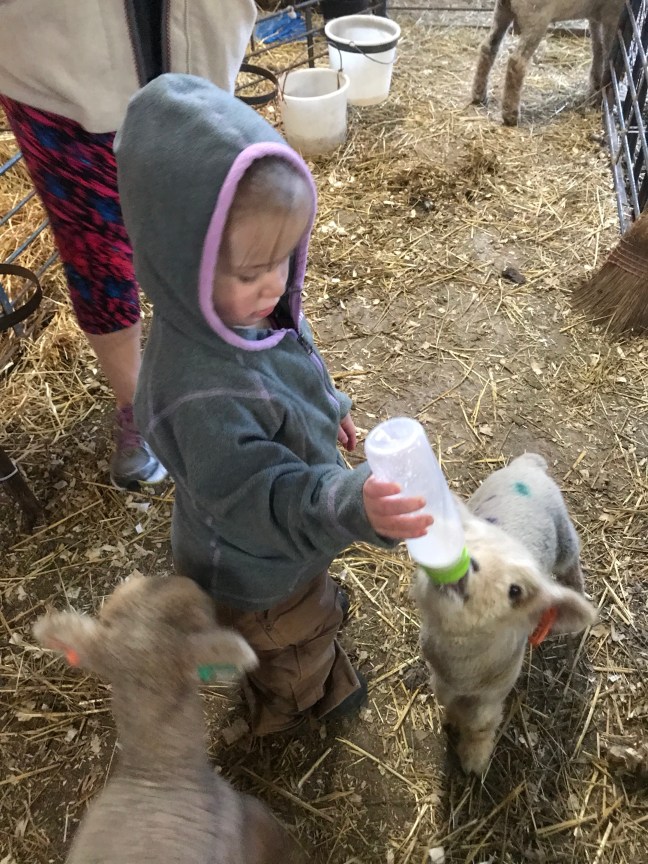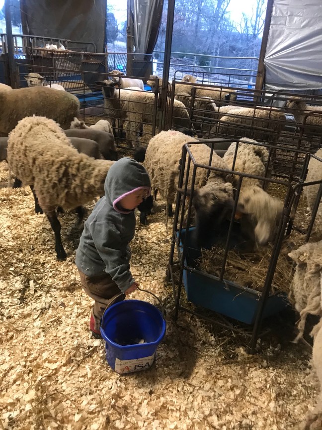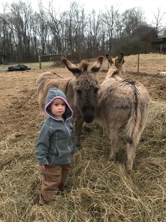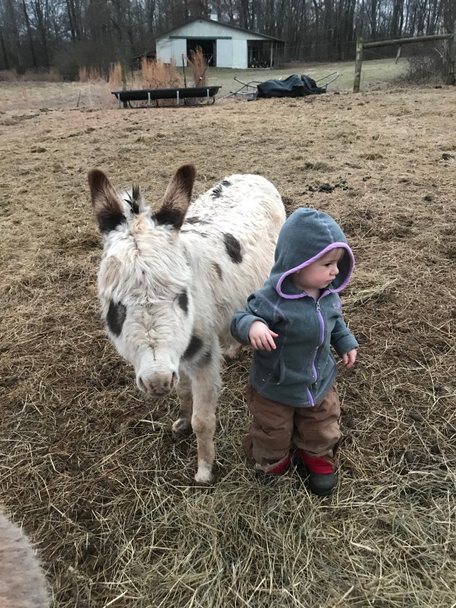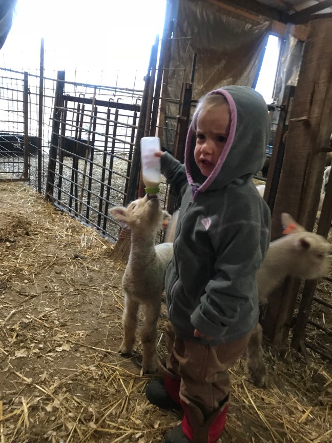 K is a hard working barn baby! She loves to feed the bottle lambs and walk amongst the ewes in the mixing pen 😍 We include K in our day to day farming activities whenever possible! No she doesn’t stay clean but what’s the fun in always being spotless?! That’s what overalls and boots are for! And naturally we visit the “donks” when we finish feeding the sheep!