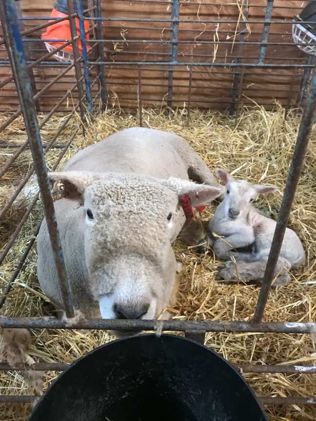 These are the words I hear from my husband as I’m laying beside a ewe who just plowed over me in the barn 😂