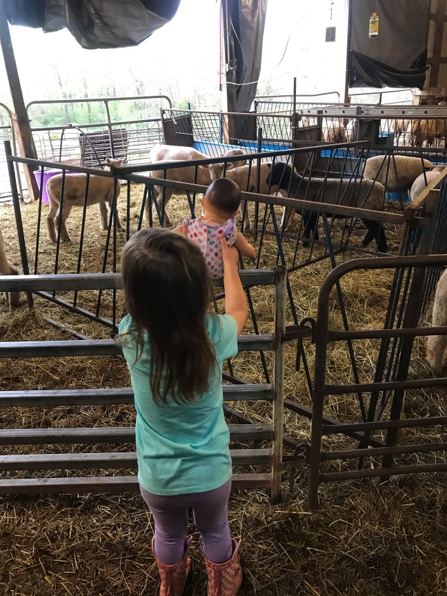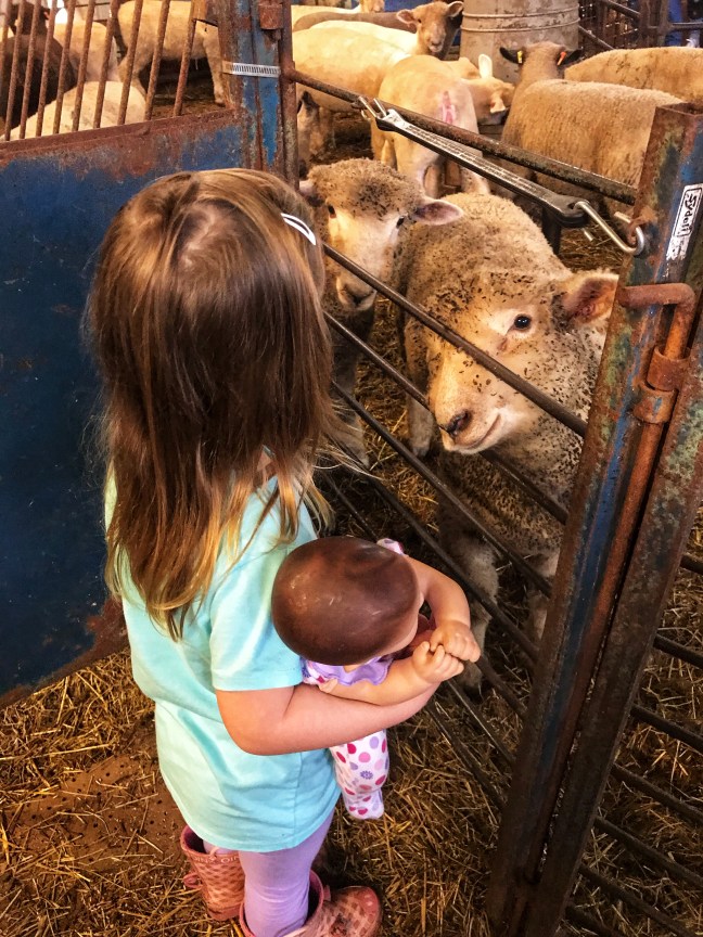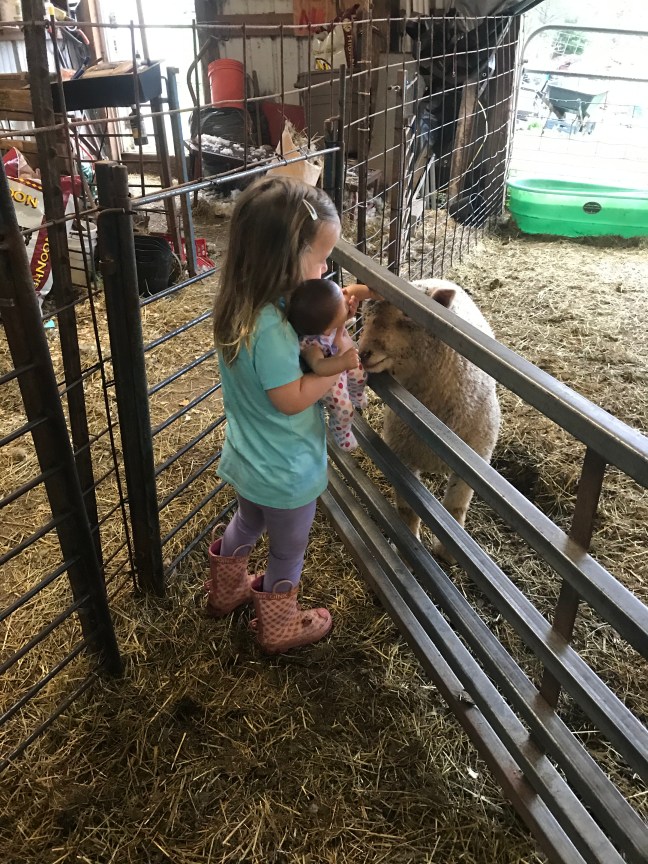Our sweet little girl always likes to be at the barn and this weekend was no exception. K brought her very special Bitty Baby to meet the lambs and told me numerous times that Bitty had been asking to come to the barn π Obviously the sheep loved her and kept wanting to sample her clothing π Bitty got her wish and sweet K loved introducing two of her favorite things to each other π